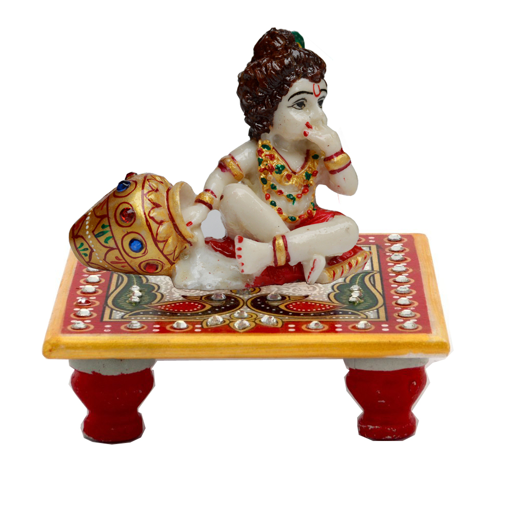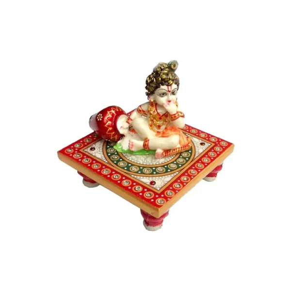 Bring divine blessings and traditional elegance to your home with this handcrafted marble Baby Krishna (Laddu Gopal) statue. The idol is carefully hand painted and placed on a beautifully decorated marble chowki with traditional motifs.