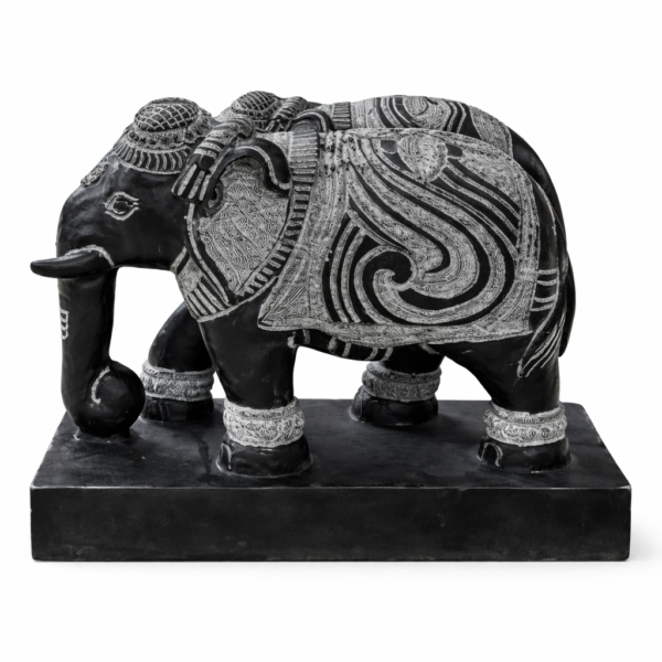 Enhance your décor with this beautifully handcrafted black marble elephant statue, featuring intricate carvings and a rich, elegant finish. Symbolizing strength, wisdom, and prosperity, this piece adds a bold and artistic touch to any space.