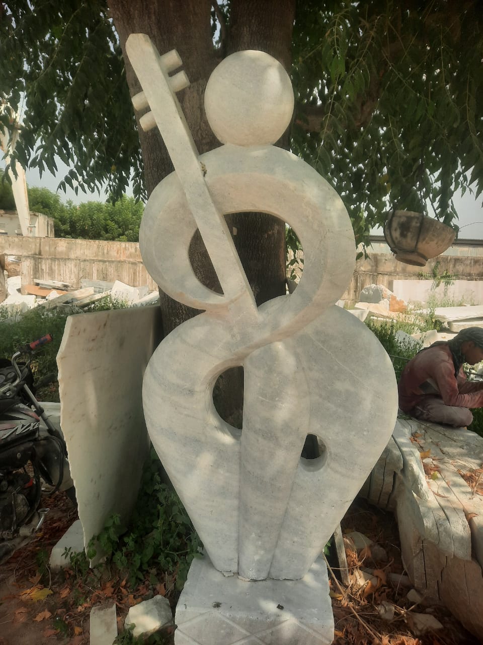 Each sculpture features a unique artistic design such as yoga meditation figures, abstract couples, musical statues, nature-inspired leaf sculptures, and contemporary artistic forms. The smooth marble finish and modern aesthetic make these statues perfect for luxury home décor, garden decoration, hotel lobbies, resorts, offices, and landscape design.
