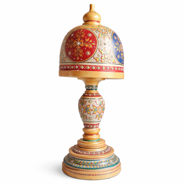 The lamp’s elegant dome-shaped shade and intricately designed base are decorated with detailed artwork and stone embellishments, giving it a royal and luxurious appearance. The traditional design makes it a perfect addition to your living room, bedroom, office, or hotel décor.