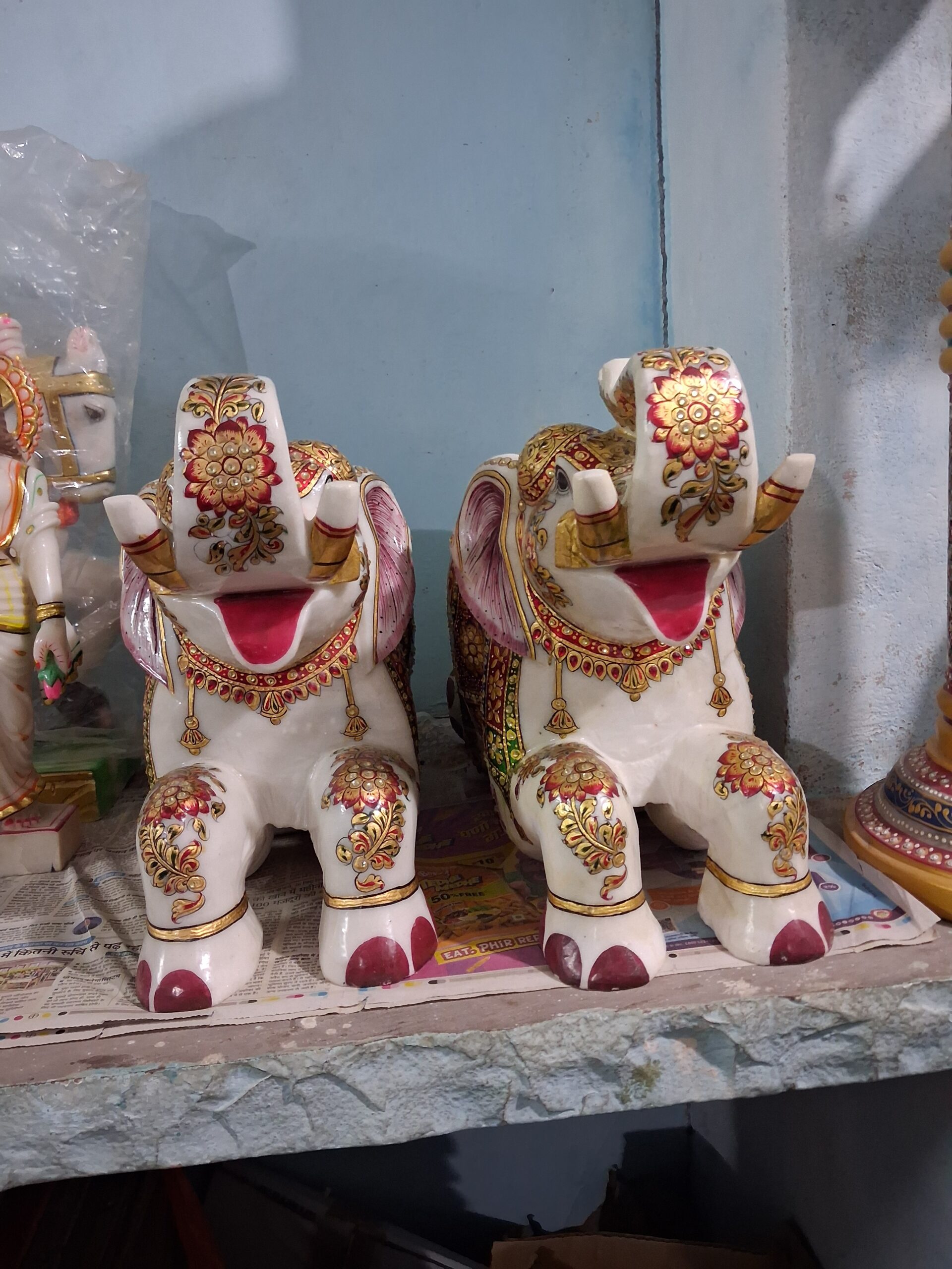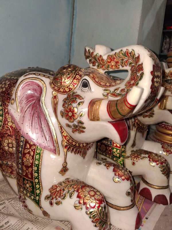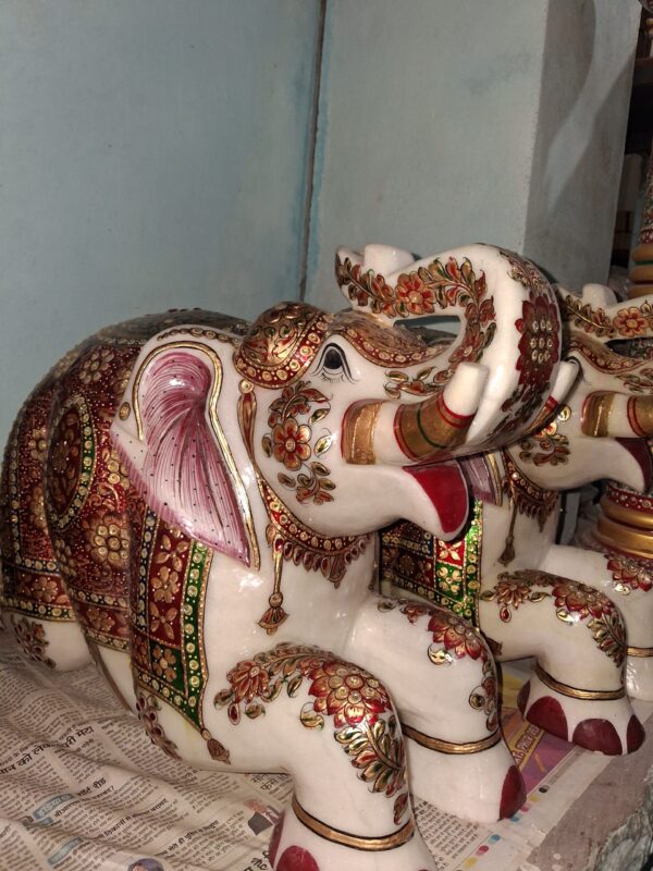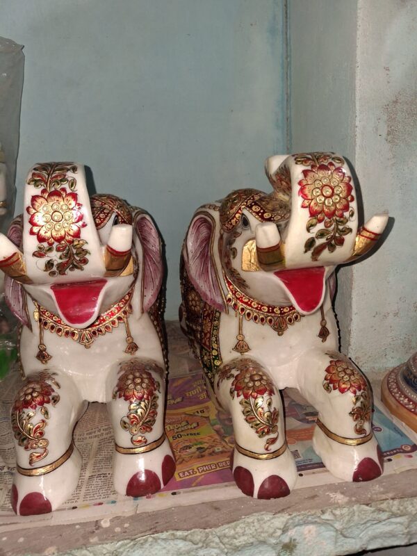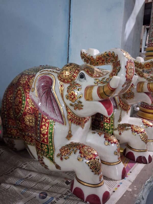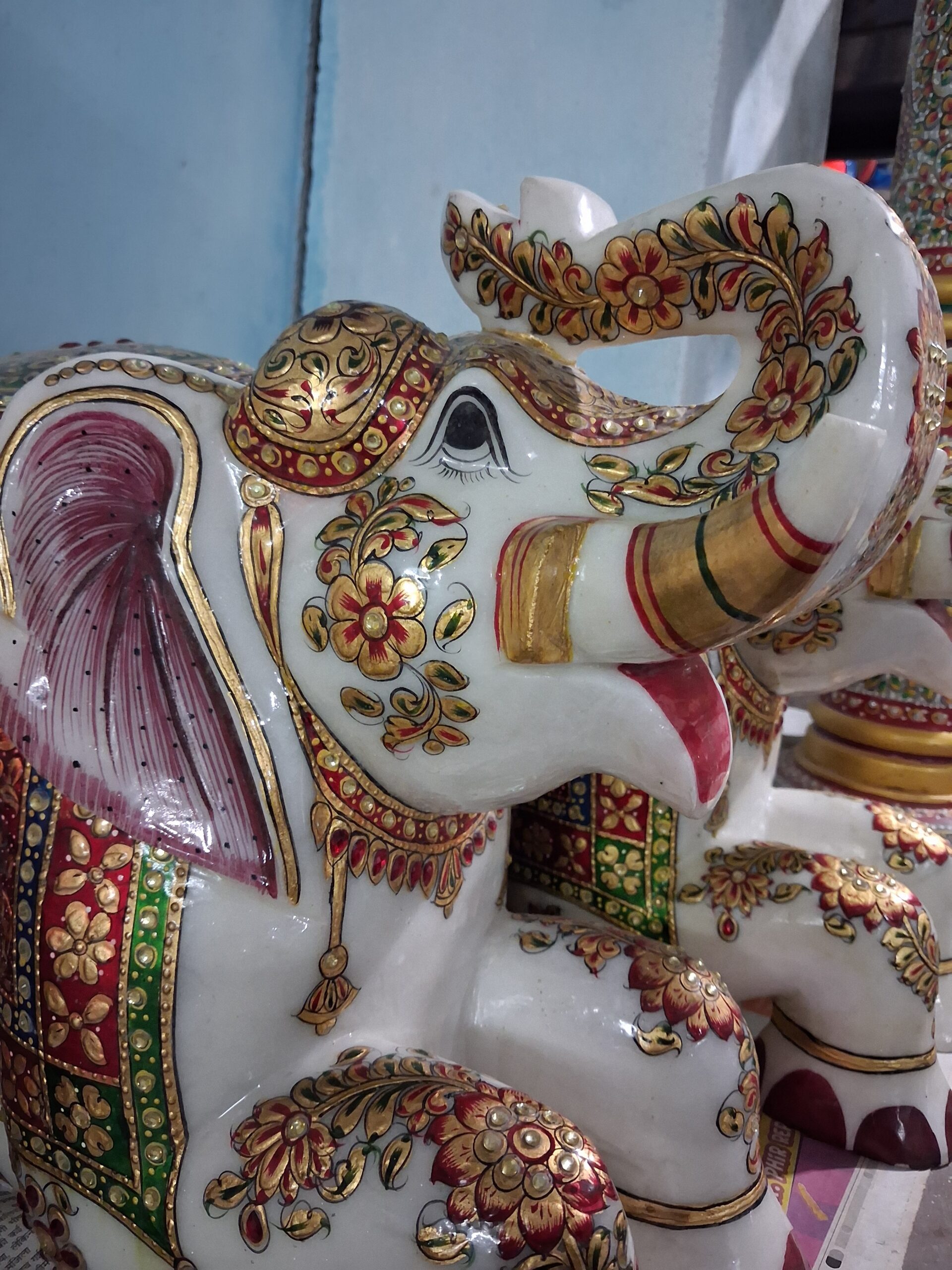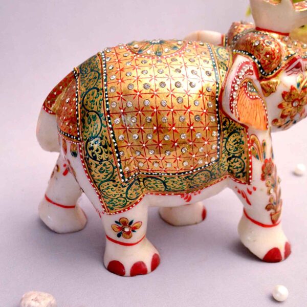 Handcrafted Marble Elephant – Traditional Hand Painted Decorative Figurines