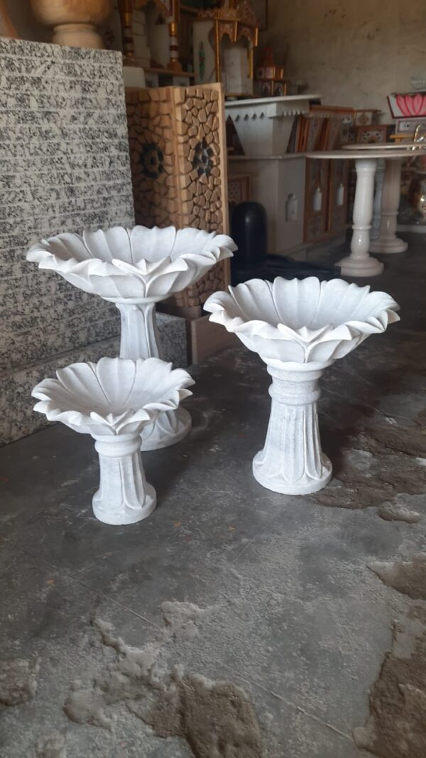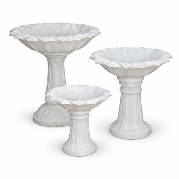 Handcrafted Marble Lotus Bird Bath Fountain – Garden Decorative Pedestal Bowl