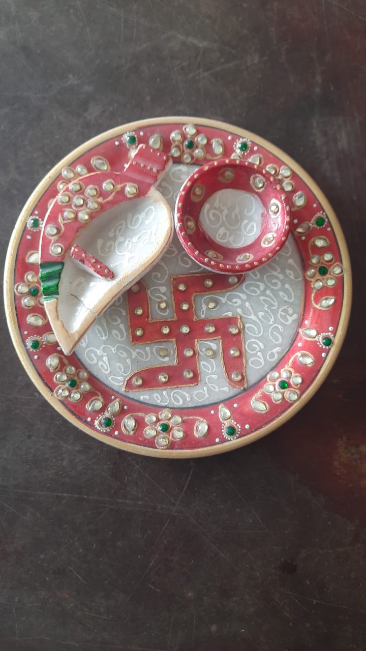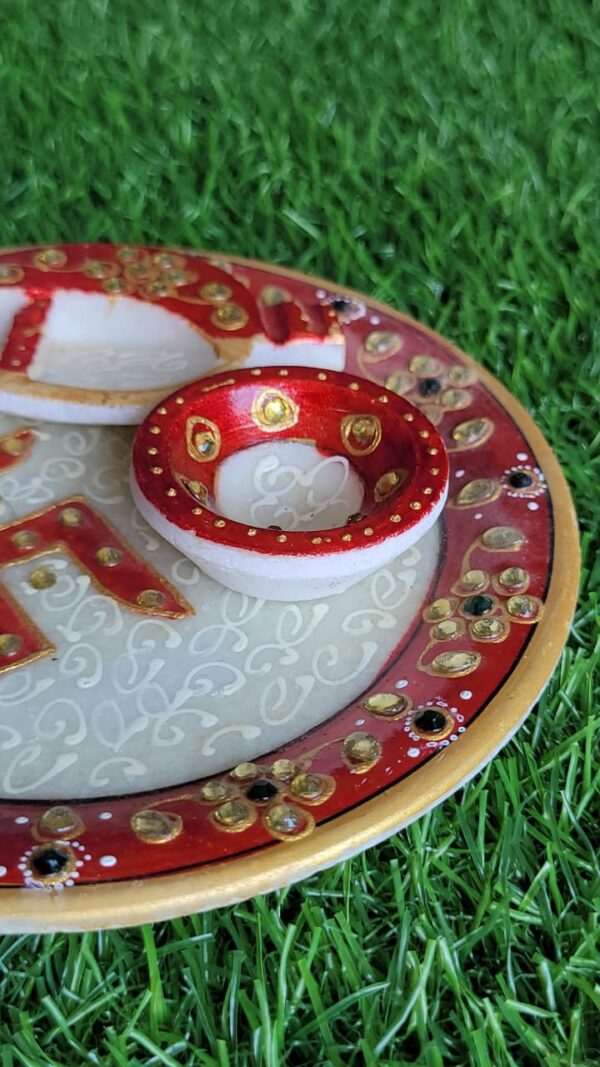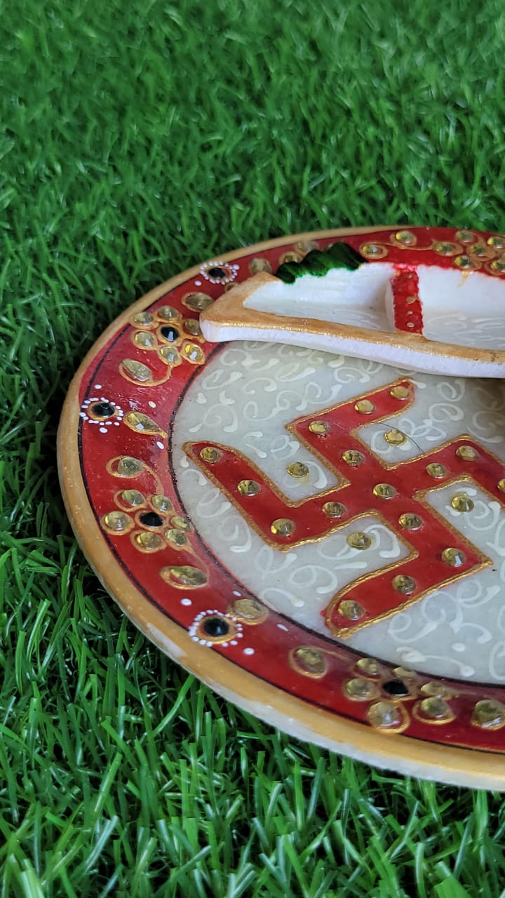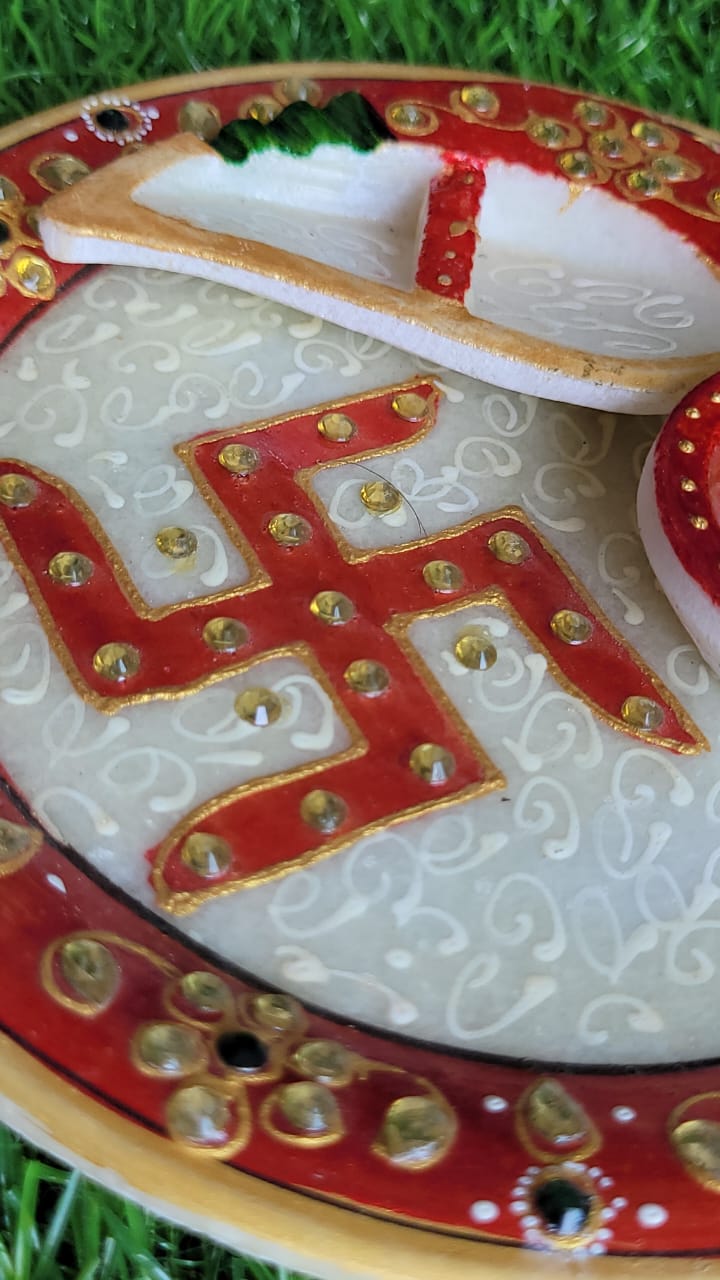 ✔ Handcrafted natural marble pooja thali