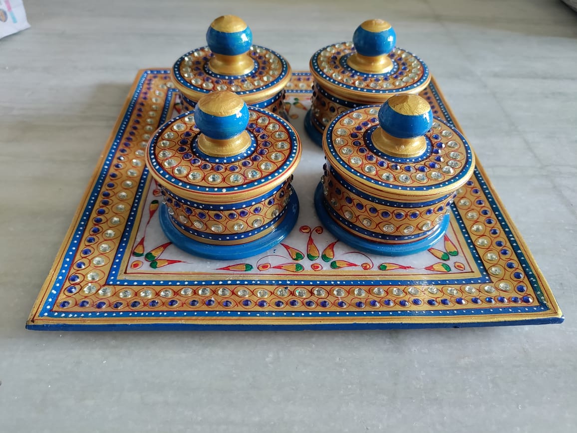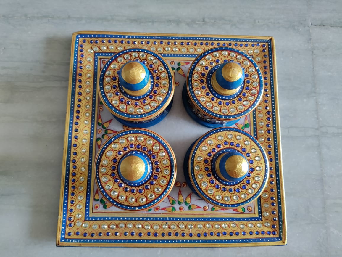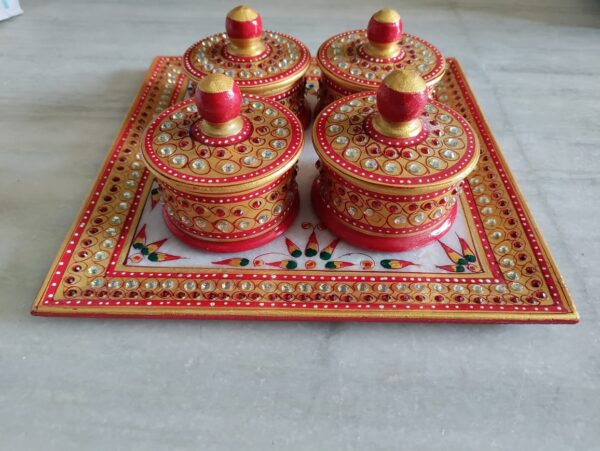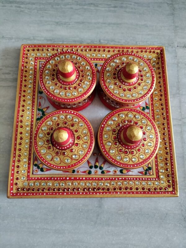 The containers are perfect for storing kumkum, roli, haldi, chawal, or other pooja essentials, making it ideal for daily worship as well as special occasions such as Diwali, Navratri, weddings, and religious ceremonies.