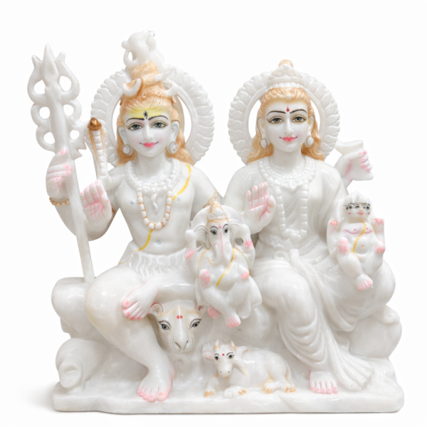 Handcrafted Marble Shiv Parivar Idol | Divine Shiva Parvati Ganesha Murti Set