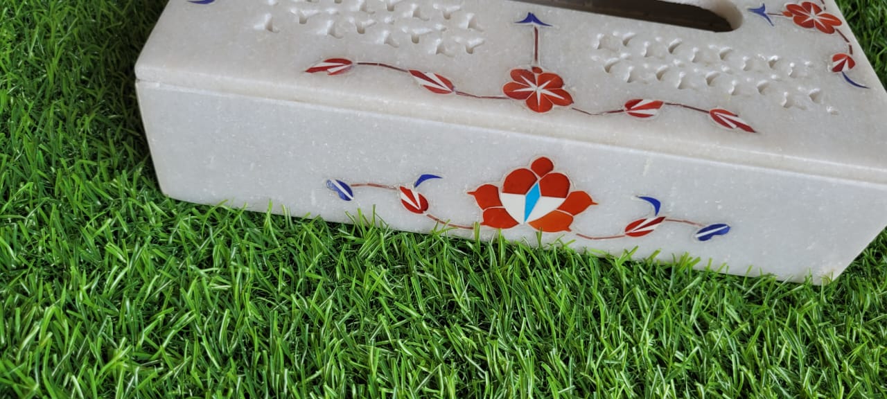 Handcrafted Marble Tissue Box Holder with Lid – Decorative Stone Inlay Tissue Box Cover