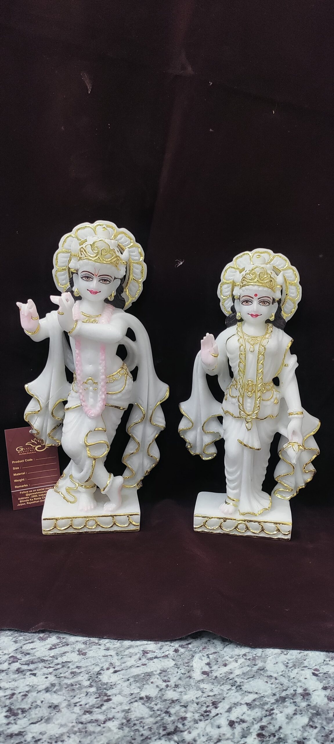Handcrafted Radha Krishna Marble Idol – Decorative Hindu God Statue for Home Temple