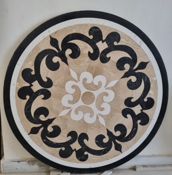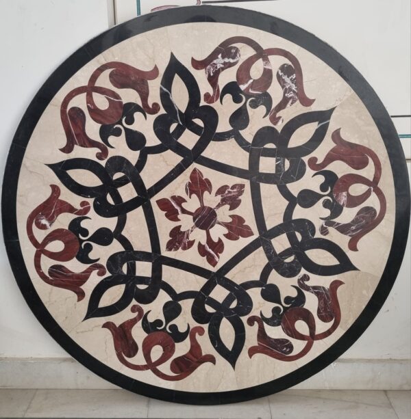 Handcrafted Round Marble Inlay Table Top – Geometric Floral Design Marble Art