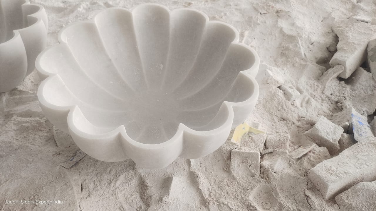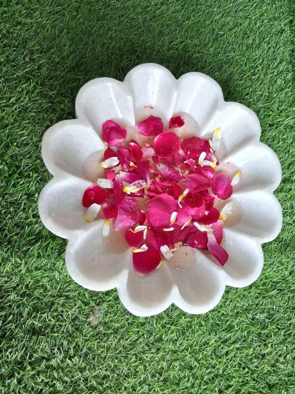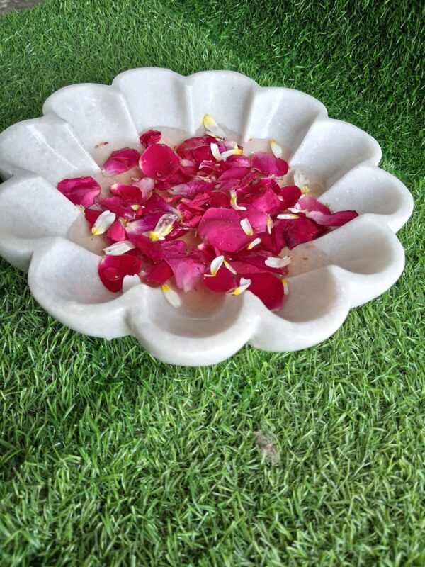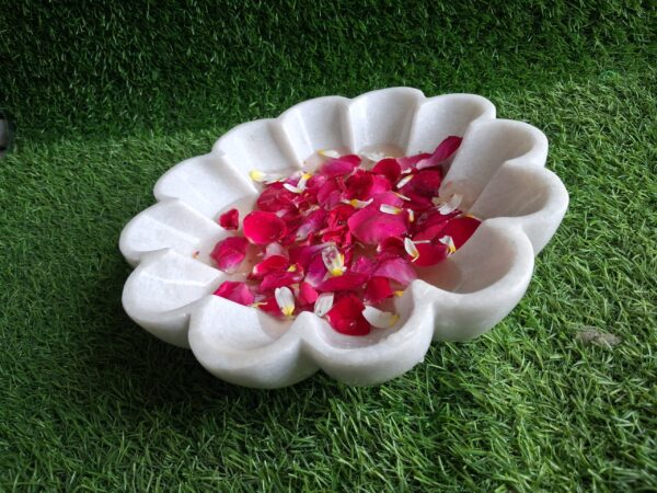 Handcrafted White Marble Flower Shape Decorative Bowl