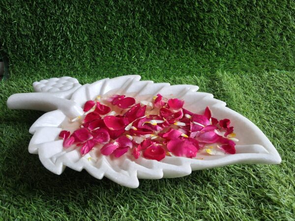 Handcrafted White Marble Leaf Shaped Decorative Bowl / Tray