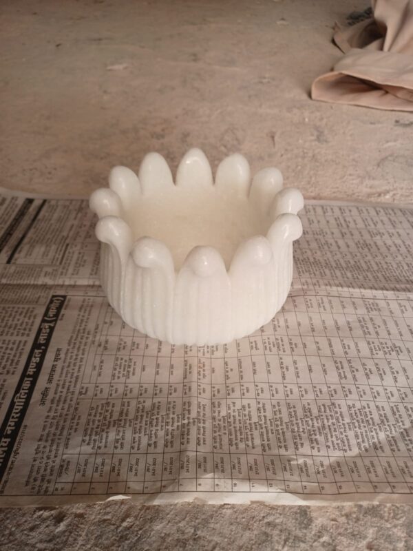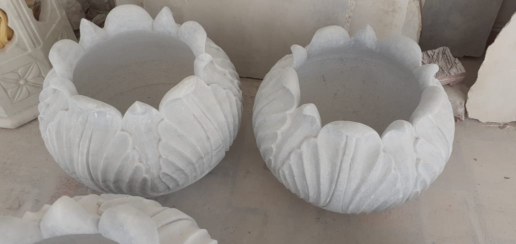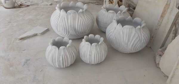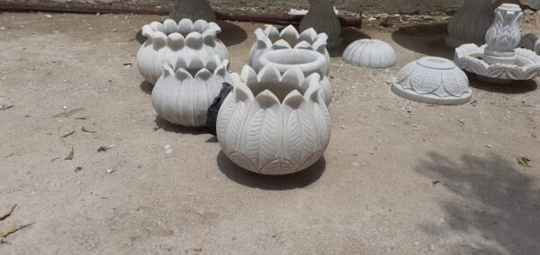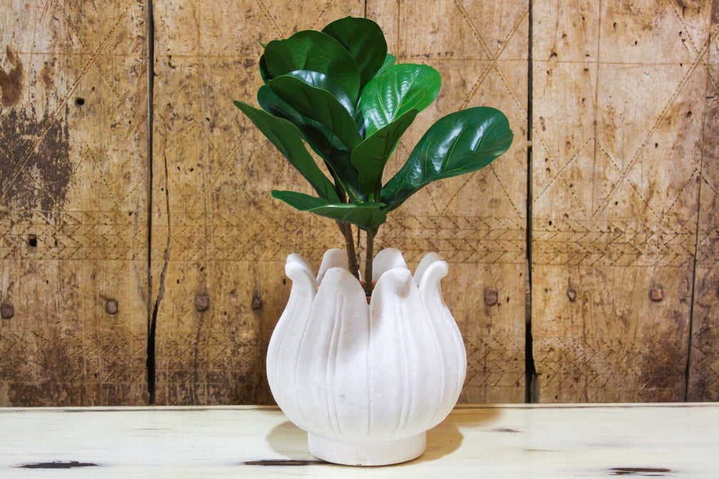 Handcrafted White Marble Lotus Design Planter Pot – Decorative Indoor Plant Pot
