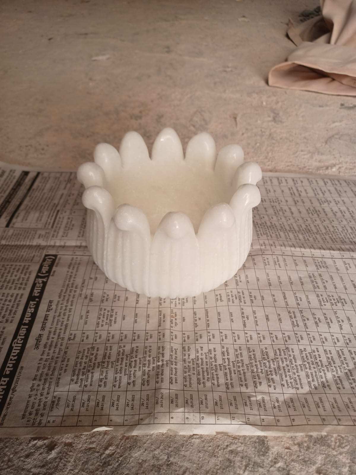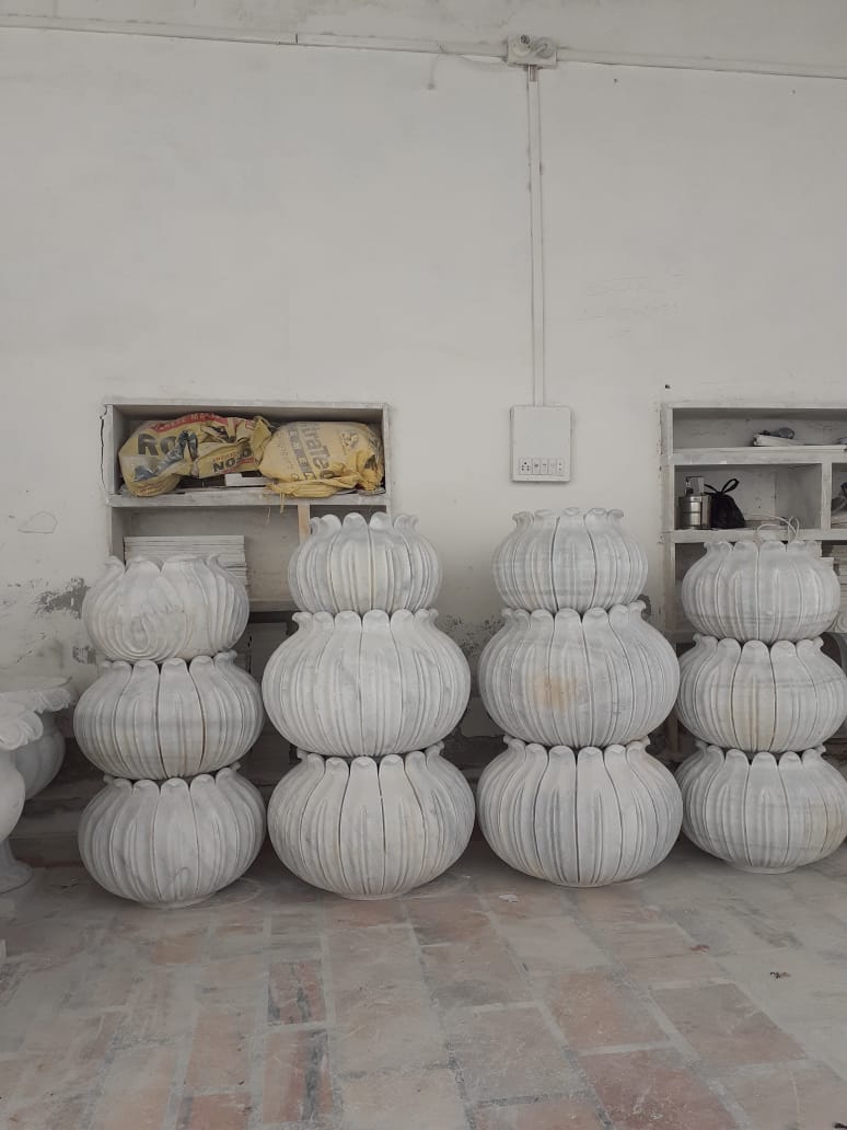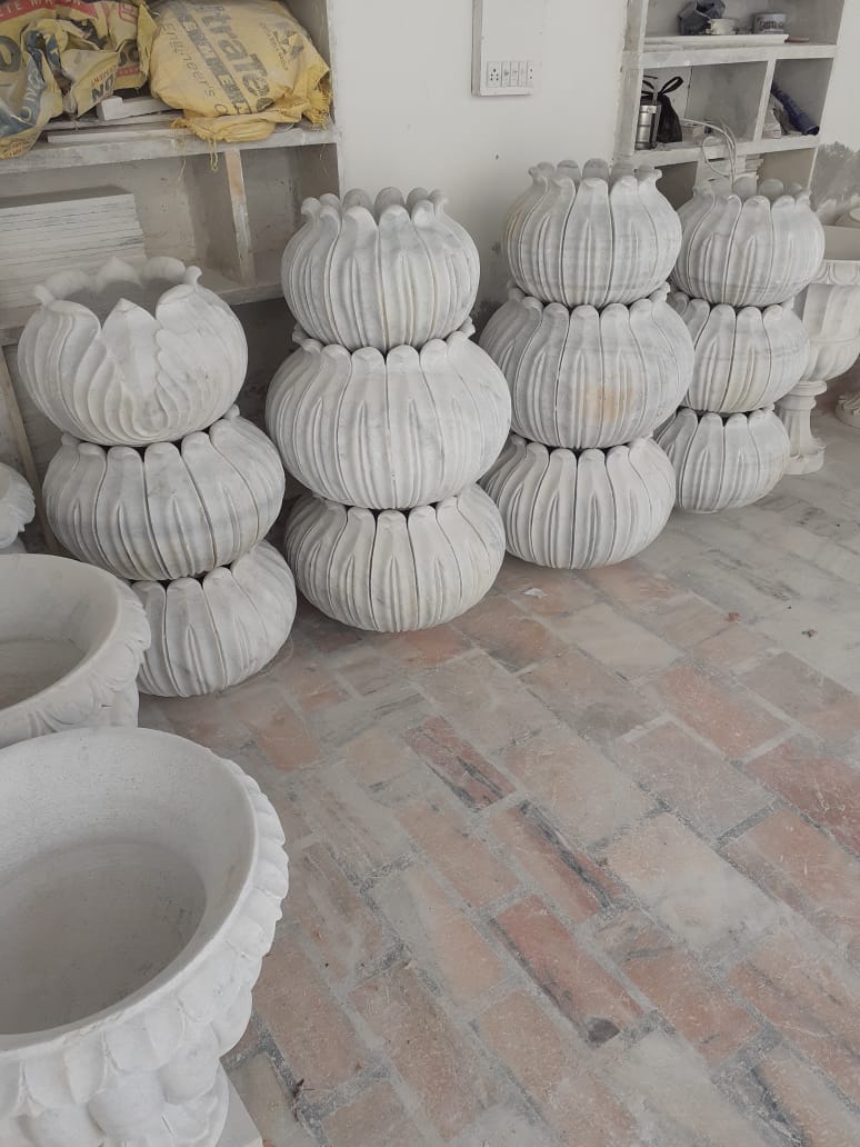 This elegant white marble planter pot is beautifully handcrafted with a lotus petal-inspired design, giving it a unique and luxurious appearance. Made from high-quality natural marble, the planter showcases smooth finishing and delicate carving work.