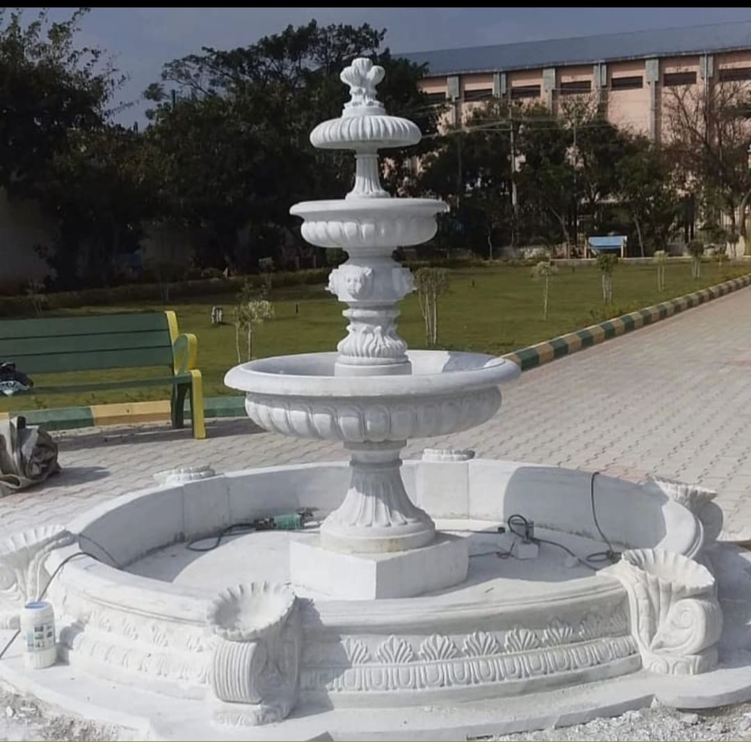 Add timeless elegance to your landscape with this premium white marble tiered fountain. Crafted from high-quality natural marble, the fountain features beautifully carved tiers that allow water to gently cascade from the top level down into a spacious circular basin.